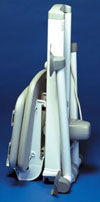 The LED light indicates when the charge is low. The hand controller will not allow the seat to descend if there is not enough power to raise the lift and person.Maximum weight: 30 stone. The frame of the Bathmaster Classic can also be folded, giving a lightweight, two piece portable unit that is easy to handle and carry.