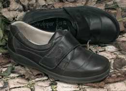 Farden - The super soft leathers, leather lining, padded collar cushioned footbed make this style a real winner for very wide, swollen or sensitive feet. The touch fastening strap and 3 in1 fitting system provides a perfect fit. Removable insoles give 3 fitting options on each foot. Available in Black or Chesnut, and in sizes 36-42, 4E-6E.
