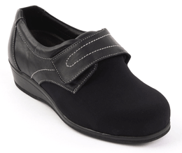 Walford - When nothing else comes close, you will find the accommodating nature of this style an answer to all your fitting problems! The stretchy front material expands to fit even the most difficult feet, and the leather rear quarters and lining ensures correct support around the ankle. A shoe that feels like it was made just for you!. Available in Black, Brown and Navy, and in sizes 3-9, 4E-6E |