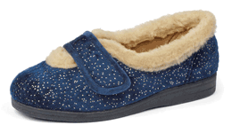 Beryl - This popular bootee style slipper has extra depth, especially at the toes, and opens out for easy entry. A slipper with support for both underfoot and around the ankle. Available in Navy or Wine Floral and sizes 3-9. Wendy - A truly versatile slipper for the most difficult or swollen feet. This style is designed to open out completely flat and can be 'rolled' up around the foot to give a snug, secure feel. Available in Wine or Navy and in sizes 3-9. Selina - This cute slipper style really will get comments from your friends and family; it just can't go unnoticed. The snug collar design hugs the foot, and the touch fasting strap allows precise adjustment for the perfect fit. Available in Navy Sparkle, Black Sparkle or Cherry Sparkle and sizes 3-9 |
