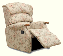 Westbury The Westbury Recliner has a lower seat height and traditional styling with extra comfort from 3 fibre-filled adjustable back cushions and wood grab handles for extra support. Available in four sizes: Grande, Standard, Petite and Low Seat Height. Available in a range of over 70 fabrics, from practical hard wearing dralon to luxurious and soft chenille, in a range of traditional and contemporary designs and colours. Also available in leather. |