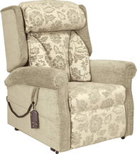 There is a choice of standard, waterproof or leather upholstery. We can also produce static chairs and settees with no moving parts to match the style and upholstery of this rise-and-recline chair. When choosing a chair, first choose the mechanism, then the style and finally the fabric. The choice of fabric is unlimited to suit any taste or to match existing items of furniture.