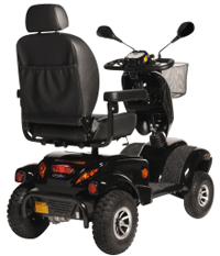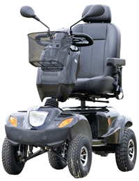 Freerider Landranger XL8 ![]() The Landranger XL8 offers a good range and a maximum speed of 9.4 mph. A full suspension setup with front and rear shock absorbers gives excellent outdoor performance. A fully adjustable seat gives extra comfort and a full lighting and signalling package is included for road use. The scooter has good cround clarance with 12.5 and 13.5 cm wheels and anti-tips at rear.