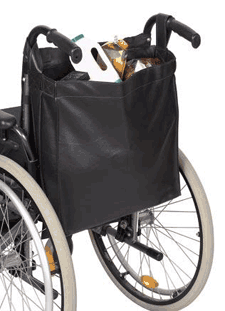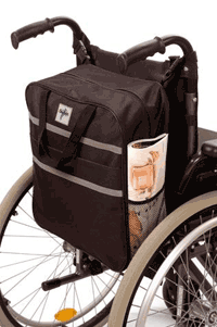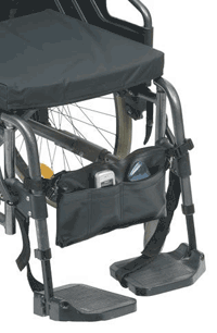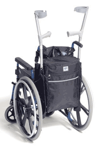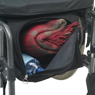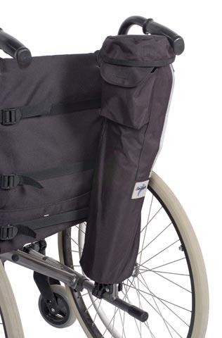 on a wheelchair. Features a front pocket to hold an oxygen mask.